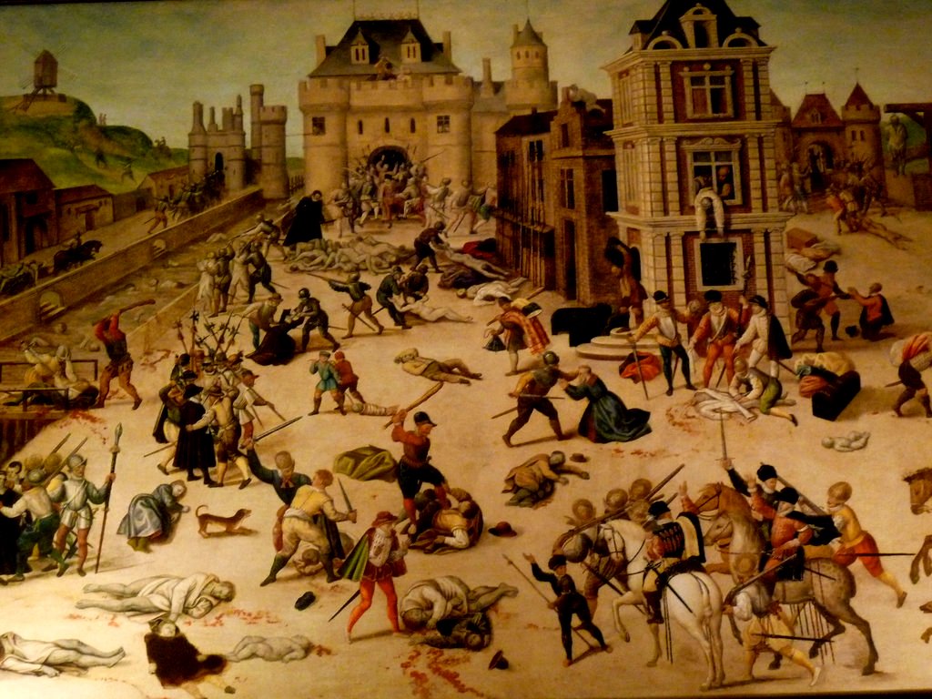 E muitas violências seriam constadas na Europa, e principalmente na França, inclusive o massacre do dia São Bartolomeu que ficaria para história, como um dos atos mais terríveis empregados, em circunstancia desse embate religioso na Europa. Onde os católicos massacraram os protestantes de uma forma tão cruel, que não permitiram que estes pudessem contrapor. É claro que para ocorrer esse massacre, muitos outros conflitos sangrentos foram observados de ambos os lados, mas esse ficaria marcado para eternidade.